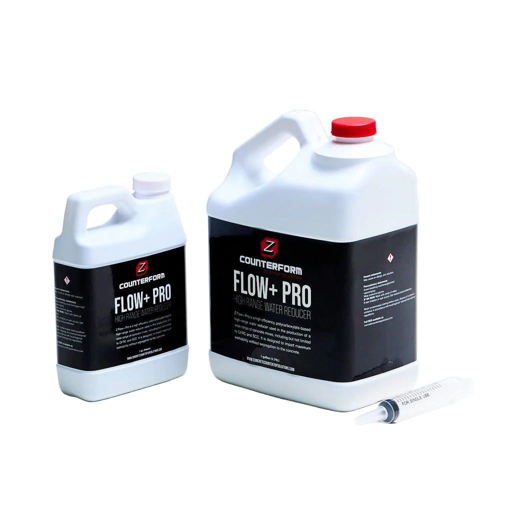 Z Flow+ Pro is a high efficiency, polycarboxylate-based high-range water reducer (aka super plasticizer) used in the production of a wide range of concrete mixes, including but not limited to GFRC and SCC. It is designed to impart maximum workability without segregation to the concrete. Sold by the quart or the gallon. 20ml syringe for measuring included for free.